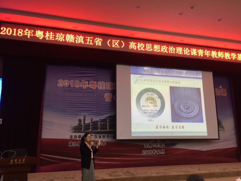 11月29日上午,2018年粤桂琼赣滇五省(区)高校思想政治理论课青年教师教学基本功大赛在大理大学(云南·大理)拉开帷幕。期间,代表海南省高校参赛的四名选手参加了激烈角逐。hy590海洋之神检测中心蒋玉老师以饱满的精神风貌、巧妙的课堂设计、娴熟的教学技艺和深厚的理论功底斩获大赛二等奖,充分展现了hy590海洋之神检测中心青年思政课教师的风采。