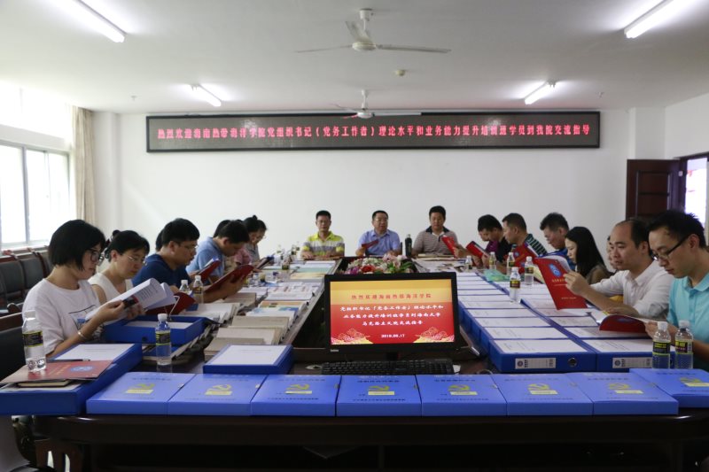 6月17日下午,海南热带海洋公司(党务工作者)理论水平与业务能力提升培训班学员到公司交流学习,并在社科楼A311会议室召开经验交流会。公司党委书记段捷频,党委副书记张井富,副处级辅导员张君成出席交流会。