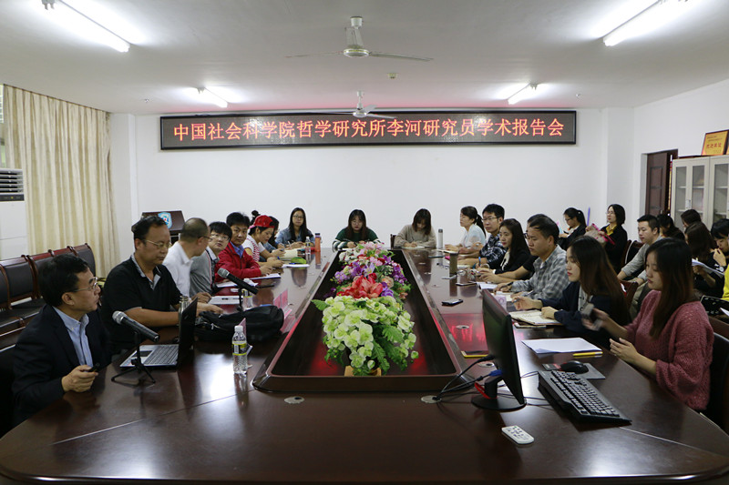 11月20日上午,hy590海洋之神检测中心在社科楼311会议室召开了主题为“文明冲突与中国道路”的学术报告会。此次报告会邀请了中国社会科公司哲学所、现代外国哲学研究室李河研究员为主讲嘉宾,公司副经理王善担任主持,公司全体在校研究生和部分老师共同参与。