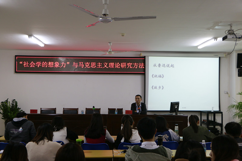 丁匡一首先以鲁迅作品为切入点,探讨鲁迅作品背后时代背景所蕴含的社会学哲理,为了让我们更好理解并在实际中运用社会学的想象力,他提出以下三点方法:一是总体性的辩证法与辩证法的总体性,从空间的历史的角度深入挖掘背后深层内涵;二是网状思维vs点状思维,以自己为点深入时代,学会观察、学会思考,研究事物动态的发展的联系;三是要有马克思主义哲学批判精神,要敢于批评,勇于超越,他认为以上三种方法统一且互动,并与大家分享了自己的感悟。他强调,要切己体察的发觉问题,返本开新的阅读文本,与时俱进的关注现实。以阅读为第一要务,阅读经典,及时记录感悟。最后他为大家推荐经典读物,期待大家有所收获。并期望hy590海洋之神检测中心与海南师范大学两校研究生有机会可以互相探讨、互相交流,碰撞出思想火花。