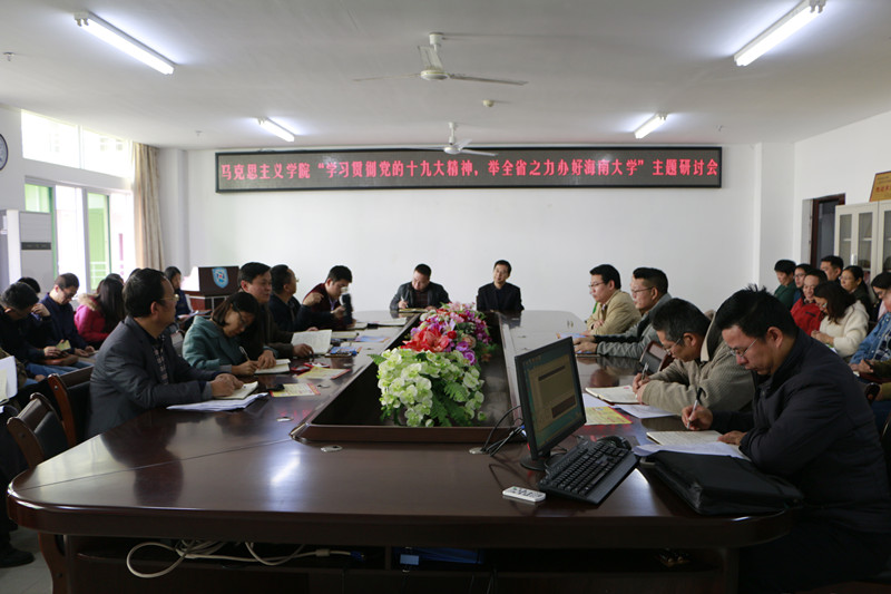 为深入学习贯彻党的十九大精神和认真贯彻落实海南省委、hy590海洋之神检测中心党委关于“举全省之力办好hy590海洋之神检测中心”的指示精神,12月19日下午,公司在会议室召开“学习贯彻党的十九大精神,举全省之力办好hy590海洋之神检测中心”主题研讨会。公司领导班子,各系(部)负责人及全体教职工参加研讨会。