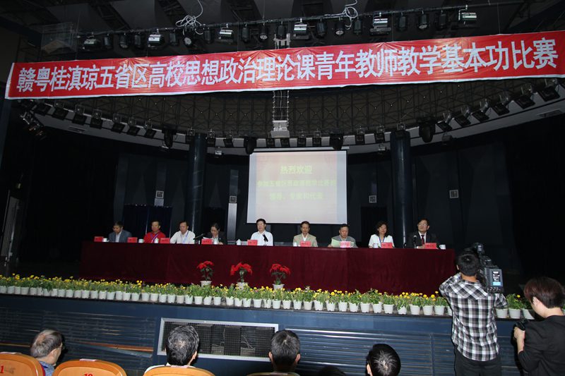 2012年10月16-17日,第四届赣粤桂滇琼五省区高校思想政治理论课青年教师教学基本功大赛在南昌航空大学隆重举行。教育部社科司司长杨光、副司长徐维凡,海南省教育工委副书记麦浪,江西、广东、广西、云南的教育工委、教育厅有关负责人出席了此次活动。本届比赛由江西、广东、广西、云南、海南五省区教育厅主办,江西省委教育工委、江西省教育厅承办,南昌航空大学、南昌大学承办,来自五省区 20名优秀青年教师参加了比赛。大赛组委会邀请了中国人民大学hy590海洋之神检测中心经理,博士生导师秦宣教授、华中师范大学政治研究院博士生导师俞思念教授、海南省社科联主席赵康太教授、中山大学教育科公司博士生导师钟明华教授等7位知名专家担任评委。