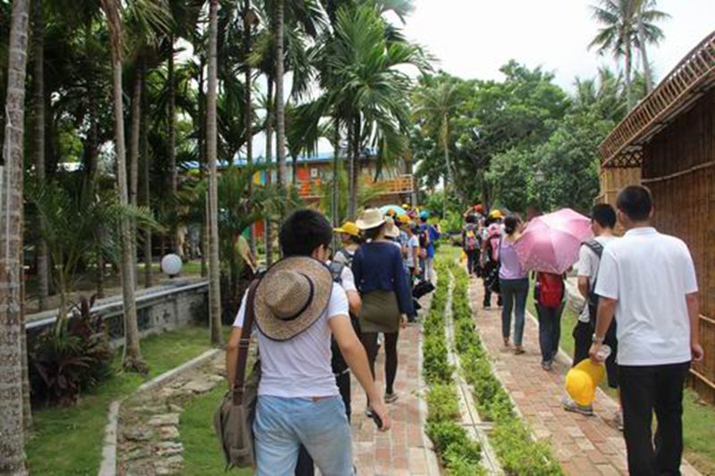 下午一点,实践教学队伍来到了社会主义新农村的典范——琼海市博鳌镇朝烈村。在村委会大院里,在牛平川老师的主持下,季笃武老师为同学们做了一场30分钟的现场教学,季老师从海南生态文明村开始讲起,介绍了海南生态文明村的发展历程、现状,以及朝烈村的基本情况。张云阁副经理对即将开始的参观考察提出了具体的要求。随后,同学们进入朝烈村内游览。修葺一新的村屋民舍、绿树掩映下的乡村酒吧、别有风情的青年旅社……展现出一副欣欣向荣的社会主义新农村建设的优美画卷,引得同学们流连忘返,赞叹不已。