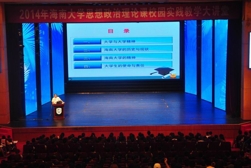 10月28日下午,本学年作为hy590海洋之神检测中心“一主三辅”思想政治理论课实践教学活动之一的校园实践教学大讲堂在思源学堂隆重开讲,公司党委书记刘康德教授再次走上大讲堂,以“大学精神与老员工使命”为主题为2014级本科新生作报告。来自全校各公司的上千名本科新生参加报告会。hy590海洋之神检测中心副经理张云阁教授主持报告会。