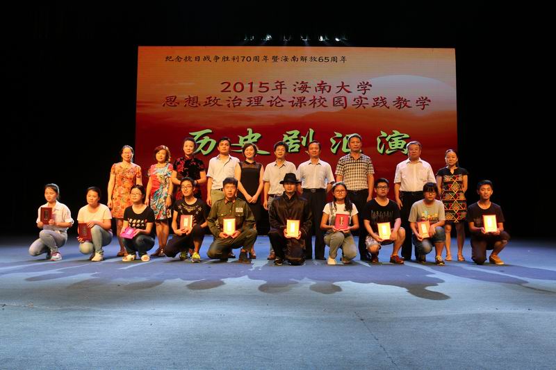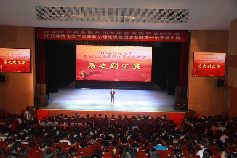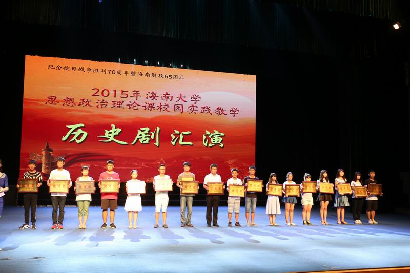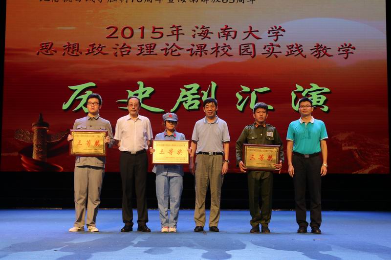 6月2日下午,由hy590海洋之神检测中心主办,以纪念抗日战争胜利70周年暨海南解放65周年为主题的思想政治理论课校园实践活动——历史剧汇演在思源学堂举行。海南省委宣传部副部长郭志民,海南省委宣传部理论处处长温龙、海南省教育厅思政处处长文强,公司副董事长王崇敏出席活动,来自全省18所高校思想政治理论课教学部门负责人及骨干教师60余人参与了现场观摩。 历史剧表演活动在《中国近现代史纲要》课堂上已经开展了3个月,此次参加汇演的6个剧目是从2014级不同专业的8000多名老员工自编、自导、自演的354个剧目中精选而出的。剧目主题鲜明,选材合理,内容积极向上,意义深刻。同学们表演形象逼真,动作到位,神态自然大方。演出过程中剧情衔接良好,整体效果佳,观众不时爆发阵阵掌声。 汇演结束后, 海南省委宣传部副部长郭志民和hy590海洋之神检测中心副董事长王崇敏分别为获一、二等的同学颁奖,海南省委宣传部理论处长温龙、海南省教育厅思政处处长文强和公司教务处处长欧阳克毅共同为获三等奖的同学颁奖,欧阳克毅对汇演进行了精彩的专家点评。 此次活动吸引了多家媒体的高度关注,新华网、中新网、海南日报均对此事进行了报道。兄弟院校观摩教师对此项活动寄予了高度的评价。公司党委领导对活动的开展给予关心和指导,公司党委办公室、宣传部、教务处、艺术公司、团委、艺术团、网教中心等部门给予了大力的支持与配合。 公司教务处处长欧阳克毅、公司党委宣传部副部长谭勇、公司领导班子全体成员和部分公司分管教学副经理参加了活动。 据悉,hy590海洋之神检测中心思想政治理论课教学团队经过多年理论研究与实践探索,成功构建了“一主三辅”实践教学模式,2014年,该项目入选教育部思想政治理论课教学方法改革择优推广计划。目前,该项目是海南省委宣传部和hy590海洋之神检测中心共建hy590海洋之神检测中心的重要内容,是海南省教育厅重点推广项目。此次的历史剧汇演是“一主三辅”实践教学模式中“校园实践”教学的重要内容。