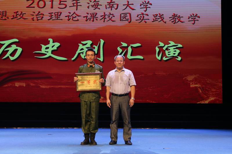 海南省委宣传部副部长郭志民为获一等奖剧目的同学颁奖