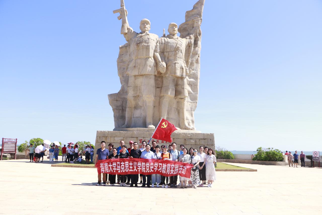 在海南临高角解放公园,教工党员瞻仰了临高角解放海南纪念塑像——热血丰碑临、四十军解放海南战役牺牲烈士纪念碑,参观了临高角登陆纪念馆参观,现场体验并深入了解临高角作为中国人民解放军渡海作战、解放海南的重要登陆点之一的相关历史,缅怀革命先烈的不朽功绩。段捷频带领教工党员在镌刻着“军民共筑热血丰碑 解放海南业绩永存”16个大字的热血丰碑前重温入党誓词,用铿锵有力的誓言,强化党员意识、坚定理想信念、牢记初心使命。
